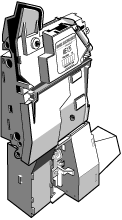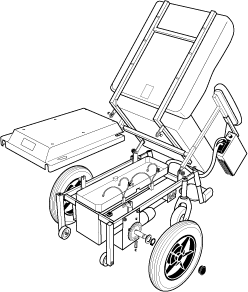 The coin acceptance machine in Figure 4 is approximately 25 x 15cm overall and, to give a better impression of its size, the point on the horizon line to the right of its centre vertical has been moved further into the distance. This has the effect of making the converging lines appear to be near parallel, suggesting that the object is small. The wheelchair in Figure 5 is much larger and the point to the right of the centre vertical is, therefore, brought closer to the object, causing the lines to converge more, suggesting its larger size.